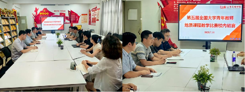 2025年7月11日下午,由教师发展中心牵头、土木工程学院承办的第五届全国大学青年教师地质课程教学比赛安徽建筑大学初赛在紫云路校区徽匠楼1306教室举行。督导组老师担任评委工作,土木工程学院和环境与能源工程学院地质课程授课老师参加。