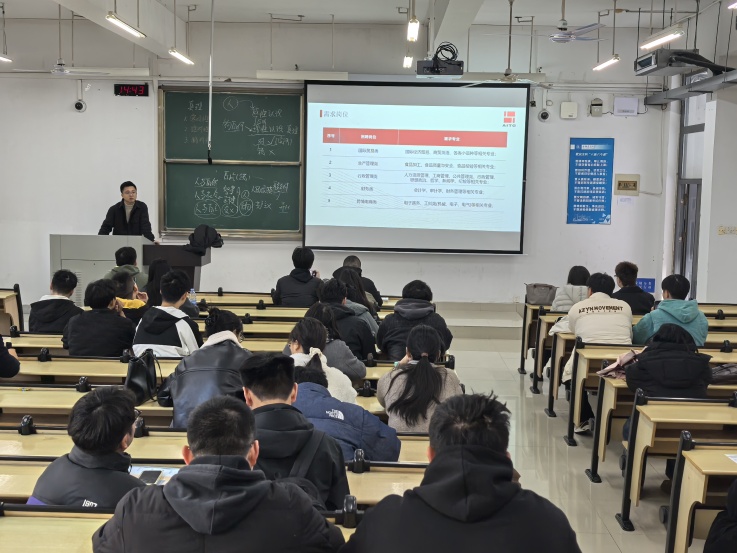 本网讯 为进一步拓宽毕业生就业渠道,搭建校企合作平台,11月18日下午,安徽国贸集团控股有限公司应邀走进我校土木工程学院,举办2026届校园招聘专场宣讲会。本次宣讲会在逸夫楼5102多媒体教室举行,吸引了许多应届毕业生到场参与。