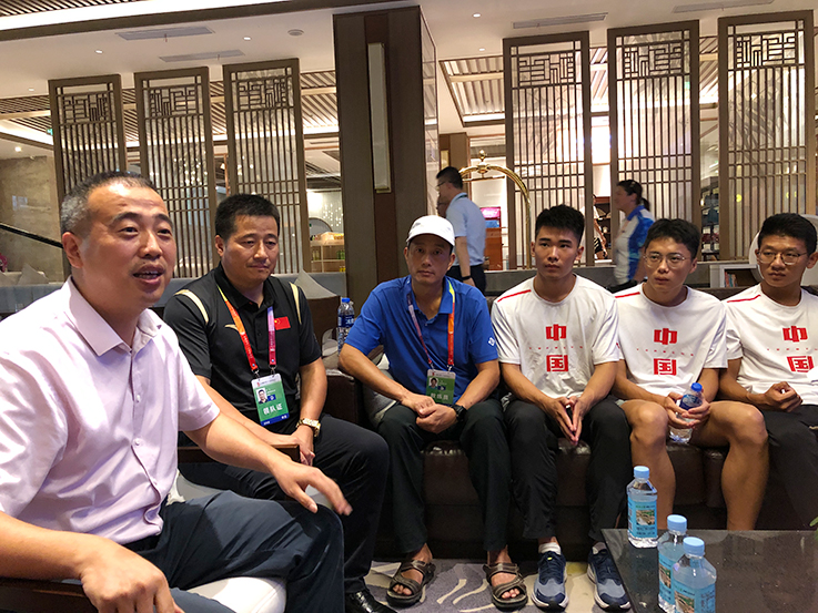 闵与运动员和教练员亲切交谈,详细了解运动员们赛前训练饮食住宿和学习等情况,对他们提出的问题一一解答,并对运动员们在炎炎夏日下的训练给予充分的肯定,勉励运动员要树立信心,顽强拼搏赛出风格,赛出水平闵杰嘱咐运动员要劳逸结合,特别在饮食和出行方面要注意,确保平安备赛,赛出成绩。