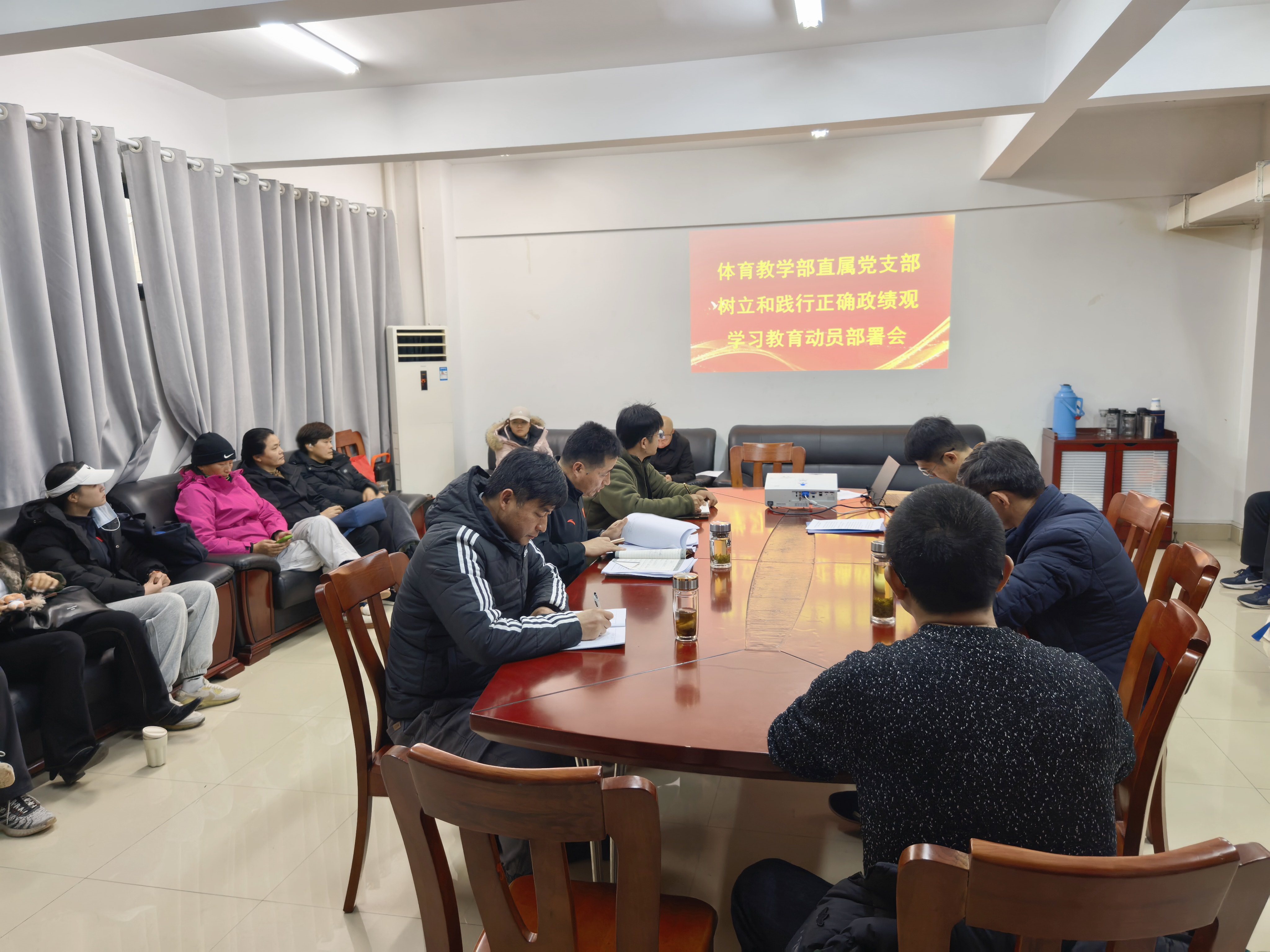 本网讯为深入贯彻落实党中央、省委及学校党委关于树立和践行正确政绩观学习教育的部署要求,切实把支部党员干部思想和行动统一到各项工作安排上来,3月4日下午,体育部直属党支部召开树立和践行正确政绩观学习教育动员部署会。会议由支部书记徐飞主持,全体党员参加会议。