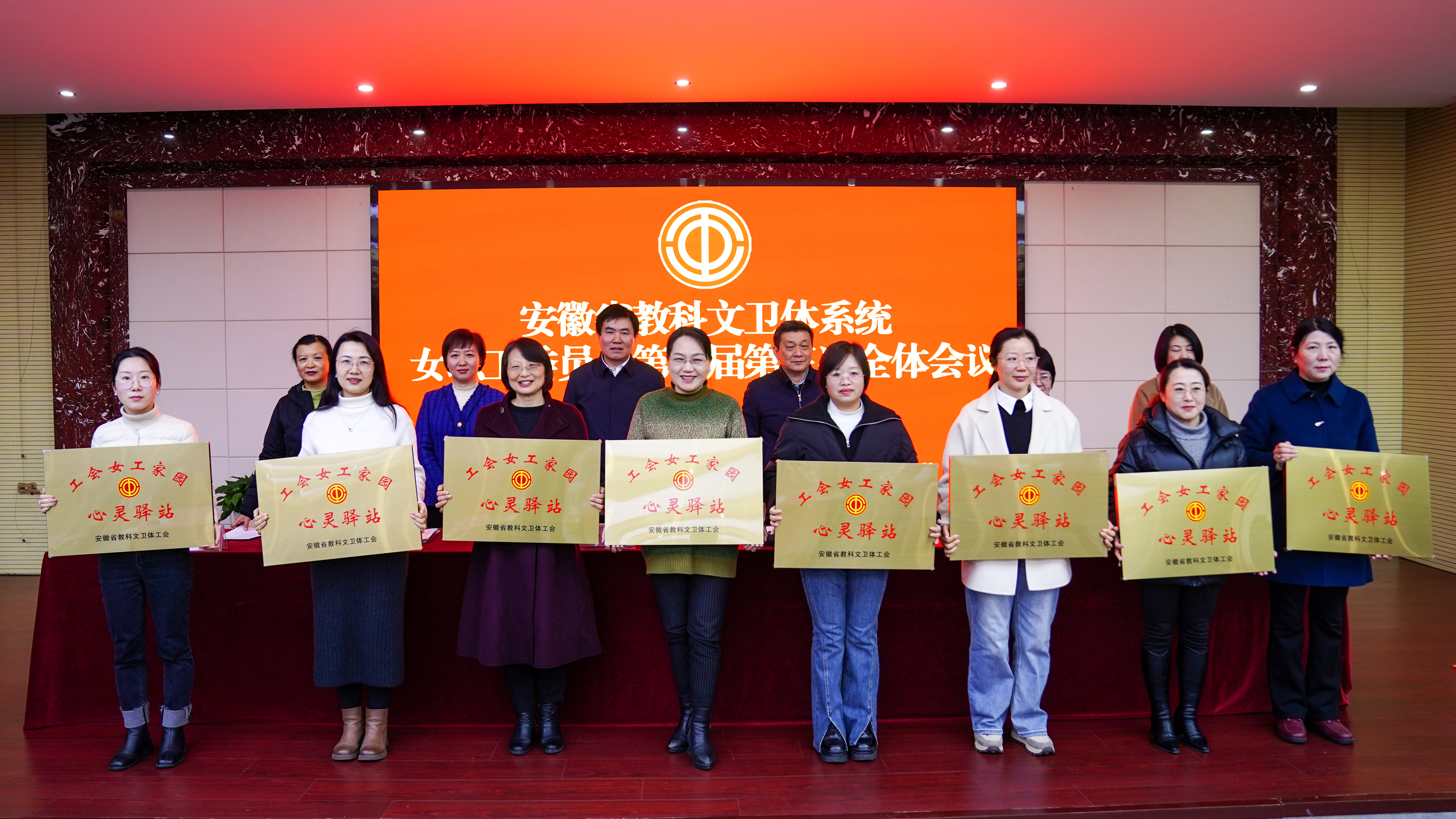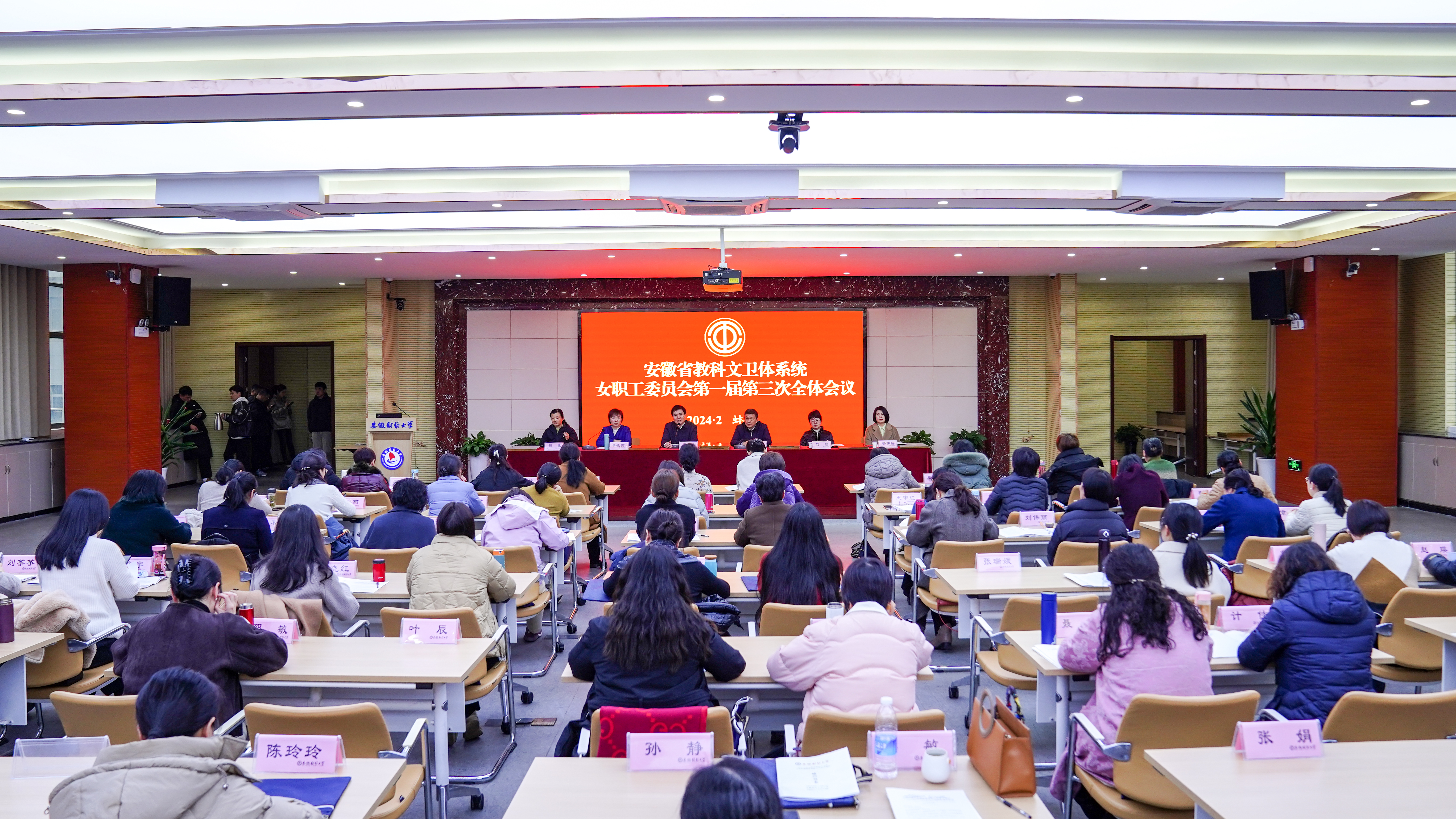 本网讯 近日,安徽省教科文卫体工会第一届女职工委员会第三次全体会议在安徽财经大学召开,省教科文卫体工会主席吴海明、安徽财经大学党委书记虞宝桃出席会议,安徽建筑大学工会主席胡雯、外国语学院分工会主席汪令宇参加了会议。