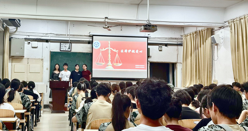 百行德为首,万事法为先。为进一步弘扬法治精神,增强广大学生法治意识,助力平安校园建设,9月14日,公管学院法律协会组织开展法润校园,典亮生活普法宣讲活动,学院2024级本科新生参加此次宣讲活动。