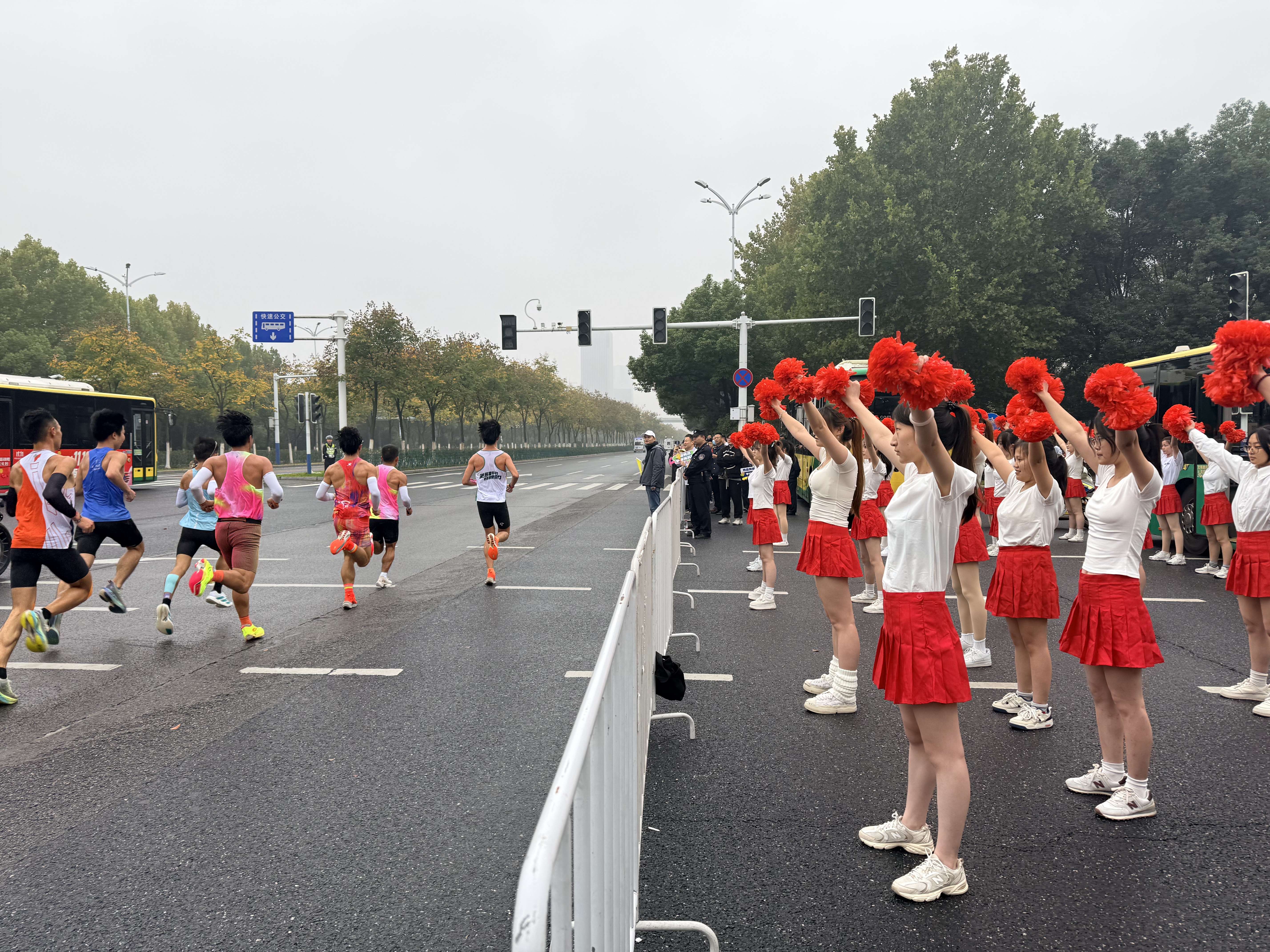 本网讯 11月9日上午,2025年合肥马拉松比赛在合肥市骆岗公园激情启幕。两万多名来自五湖四海的跑者汇聚一堂,共同在这片热土上挥洒汗水、挑战自我,领略合肥的城市韵味。我校啦啦操俱乐部受邀参加了本届合肥马拉松展演活动。