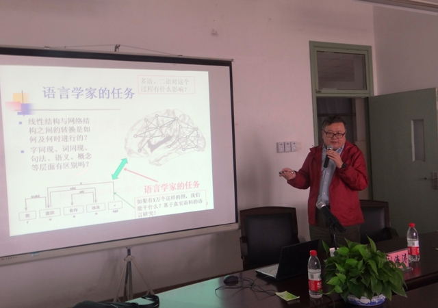 本网讯 10月21日下午,知名语言学家、浙江大学求是特聘教授刘海涛博士光临我校,应外语系邀请,举行 “从依存关系到语言网络”学术讲座。讲座由外语系主任林莉兰主持,外语系各教研室教师和校外来宾聆听了讲座。