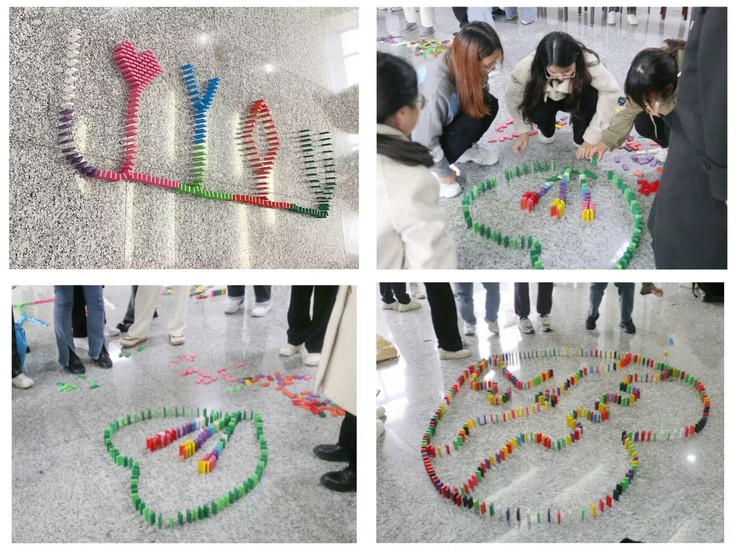 本网讯 为了丰富同学们的课余生活,活跃校园气氛,发扬团队精神,加强同学之间的交流合作,提高同学们的意志力,在心理健康中心的指导下,作为学校心理嘉年华特色活动,外国语学院于12月7日举办“同舟共济,追梦同行”趣味多米诺骨牌大赛。本次活动由外国语学院心理部承办,外国语学院全体学生参与。