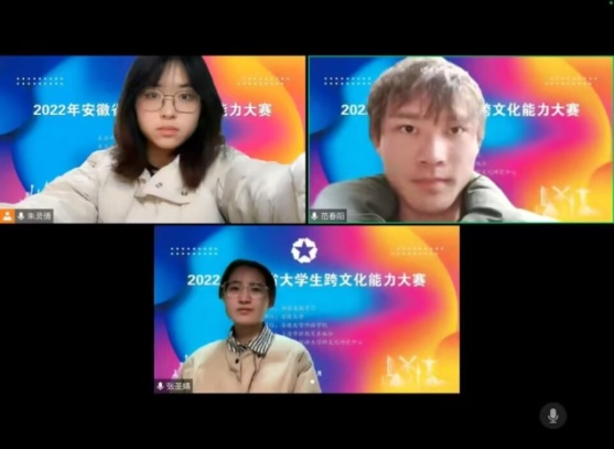 本网讯 2022年安徽省大学生跨文化能力大赛于12月3日落下帷幕。我校外国语学院吴纬芳、李倩、唐贝贝老师带领来自英语、金融、工程管理专业的六位学生组成公共英语组和英语专业组,经过精心准备和刻苦训练,一路过关斩将,最终获得省二等奖和省三等奖的佳绩。