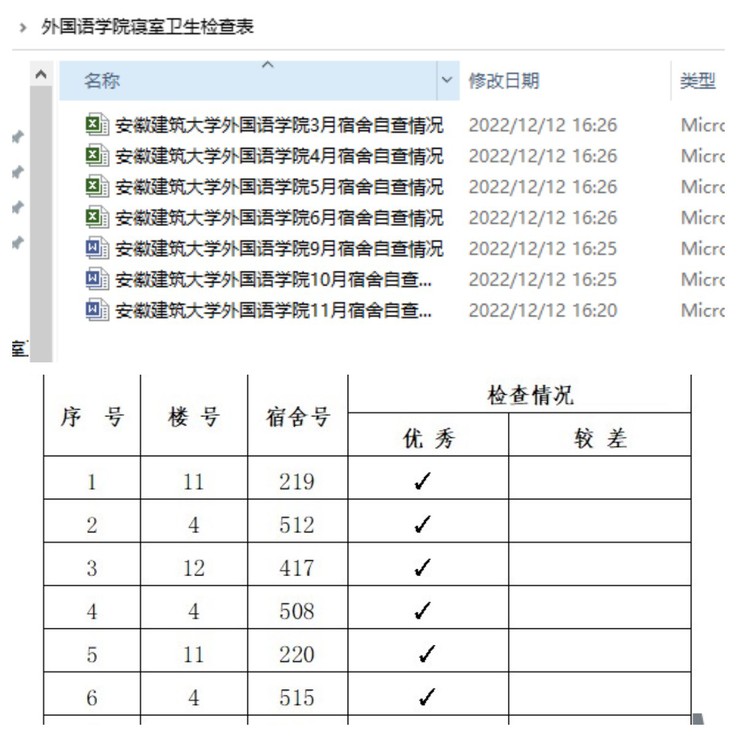 卫生大检查是外国语学院一直坚持的制度,也是培养学生劳动习惯的有力抓手。每月开展2次寝室卫生检查标准严格检查,并及时在公布结果,对检查优秀的寝室给予物质奖励,对检查整体为差的,给予批评,并责令其整改,在日常卫生清洁中培养了学生的劳动习惯。