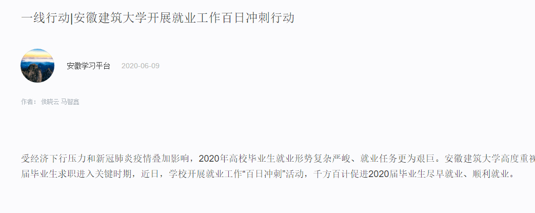 【媒体建大】学习强国:安徽建筑大学开展就业工作百日冲刺行动