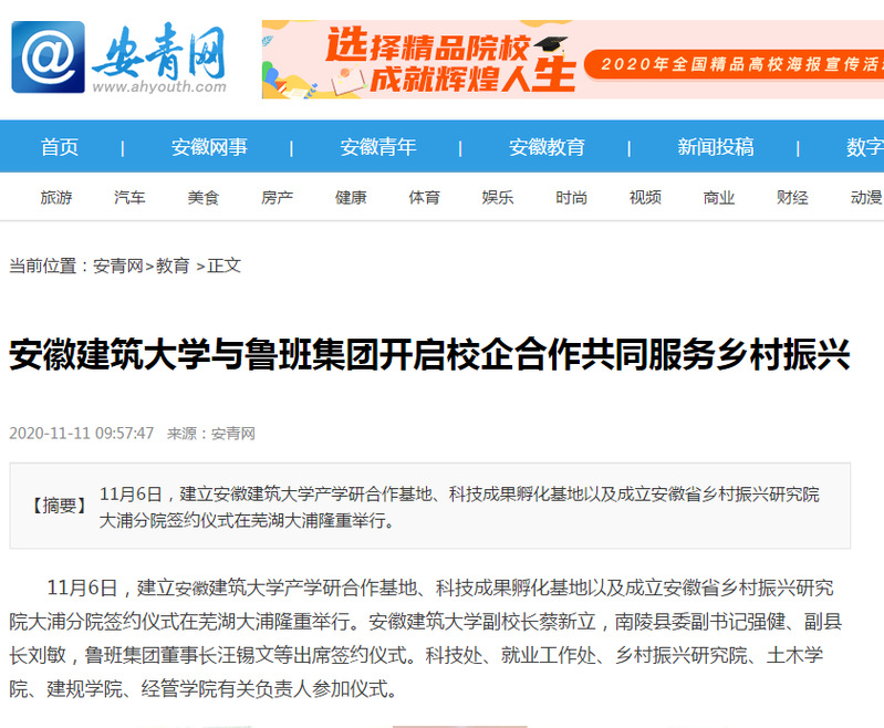 安徽建筑大学与鲁班集团开启校企合作共同服务乡村振兴