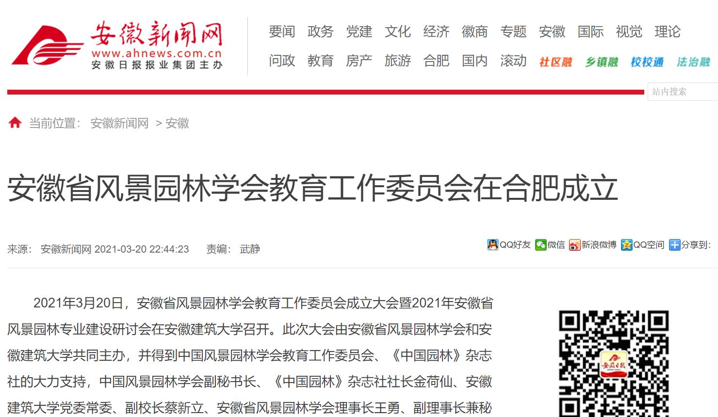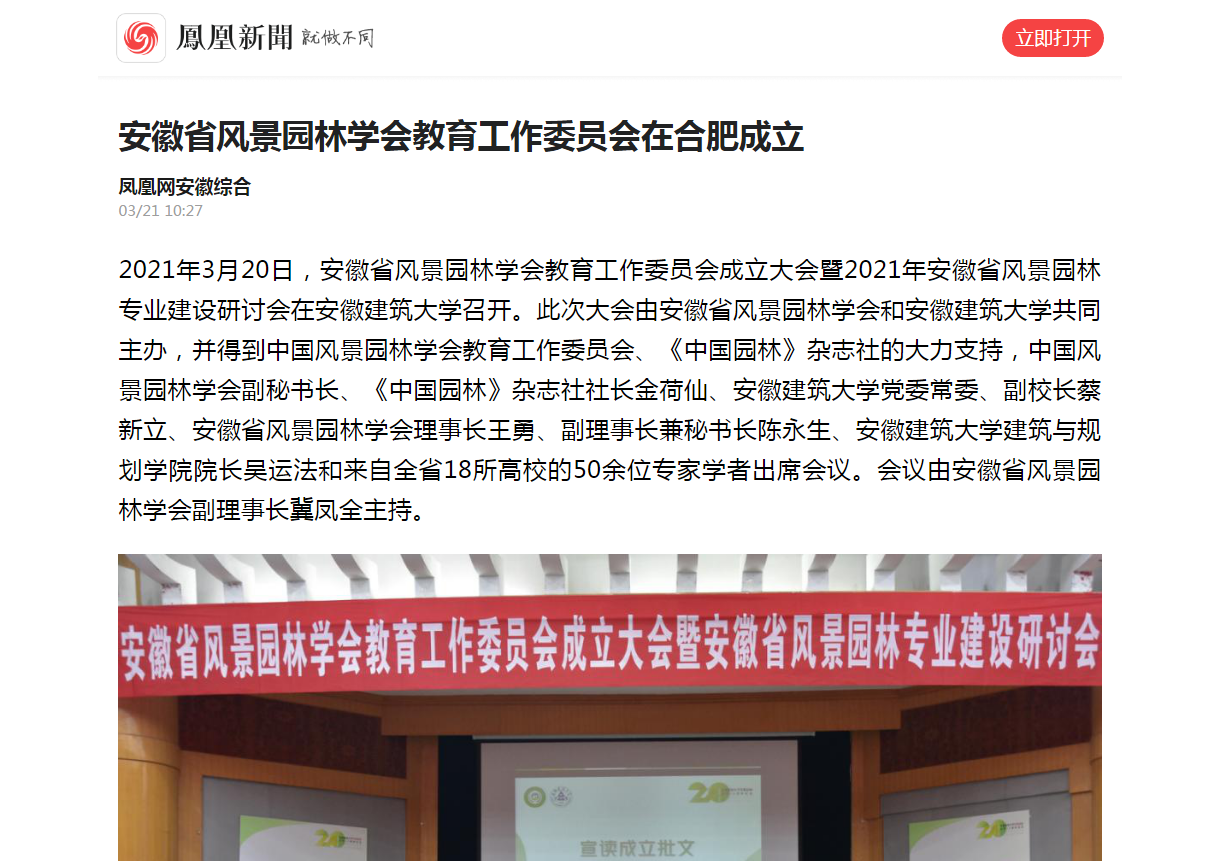编者按:3月20日,安徽省风景园林学会教育工作委员会成立大会暨2021年安徽省风景园林专业建设研讨会在我校圆满落幕。安徽新闻网、安徽日报、凤凰网等对此进行了报道。