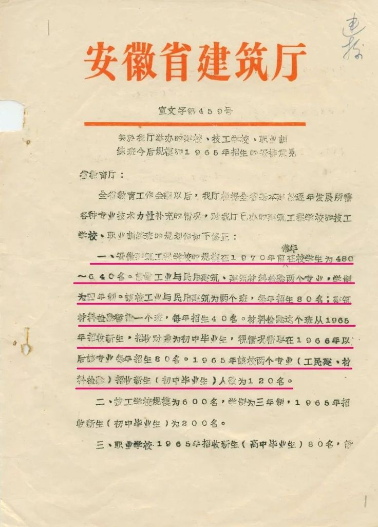 1965年学校办学规划的批文(安徽建筑大学档案馆供图)