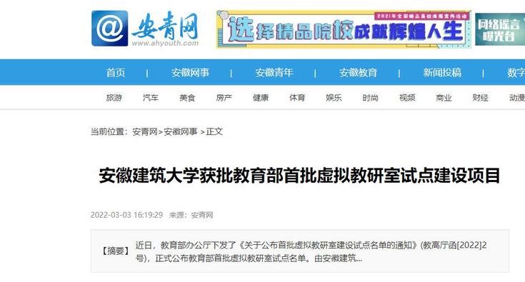 编者按:近日,我校成功获批教育部首批虚拟教研室试点建设项目,3月3日,安青网对此进行了报道。