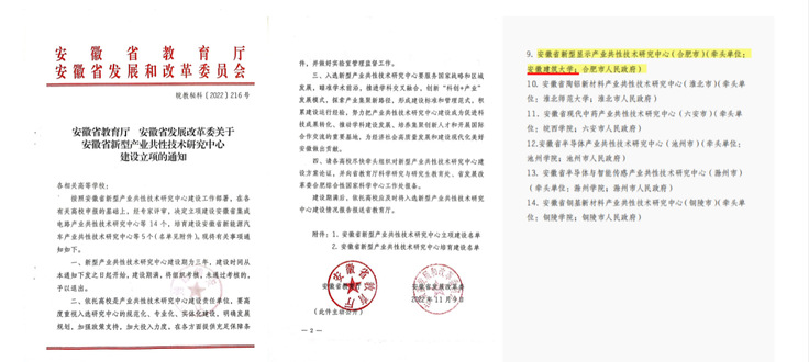 近日,安徽省教育厅、安徽省发展和改革委员会联合下发了《安徽省教育厅安徽省发展改革委关于安徽省新型产业共性技术研究中心建设立项的通知》(皖教秘科[2022]216号),由安徽建筑大学和合肥市政府牵头,东超科技有限公司、芯瑞达科技有限公司共同申报的“安徽省新型显示产业共性技术研究中心”成功获批立项建设。