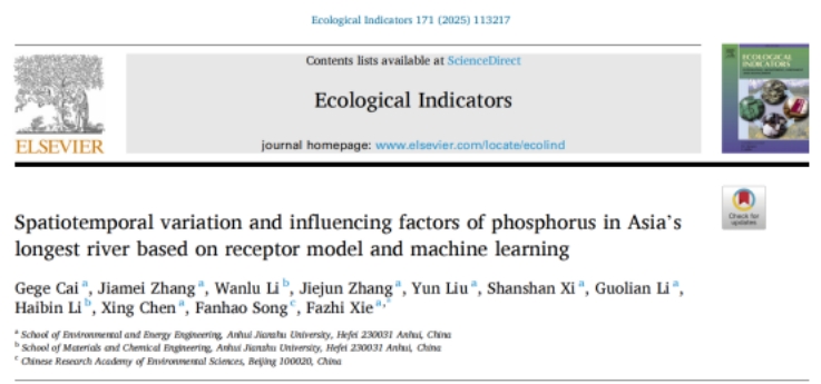 本网讯 近日,我校环境与能源工程学院博士研究生蔡格格同学作为第一作者在环境领域中科院一区TOP期刊《Ecological Indicators》在线发表科研论文,安徽建筑大学环境与能源工程学院为论文的第一完成单位和通讯单位。