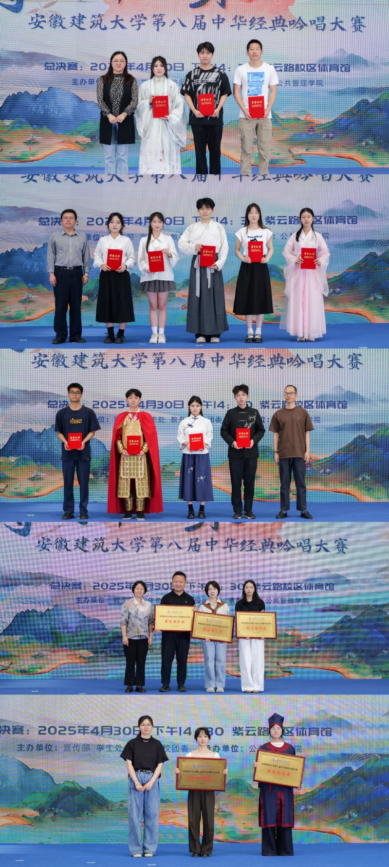 从《爱莲说》到《满江红》,从楚辞吟诵到剧情演绎,安徽建筑大学第八届中华经典吟唱大赛以艺术之美传递廉洁之魂,为校园文化建设注入了新的活力。正如大赛主题所言,“诗书养廉韵 雅言颂清风”,这场跨越时空的对话,不仅让经典焕发新生,更让廉洁成为新时代青年的精神底色。未来,学校将继续深化“文化+廉洁”的育人模式,让清廉之风浸润校园,为培养担当民族复兴大任的时代新人筑牢思想根基。(文/图:林兴勇 王梦妮;一审:林兴勇;二审:江侠;三审:黄佳豪)