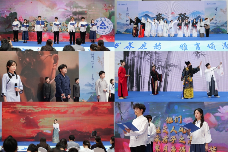大赛自启动以来,得到全校师生的积极响应,11个学院精心筹备,通过初赛选拔,最终14个作品入围决赛。节目以《诗经》《楚辞》、唐宋诗词及现当代经典文学为载体,巧妙融入朗诵、吟唱、情景剧、舞蹈、书法等多元艺术形式,将“廉”的精神内核与“诗词”的审美意境有机结合,生动展现了中华经典的时代价值与育人功能。