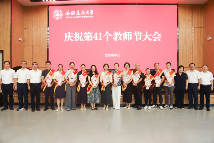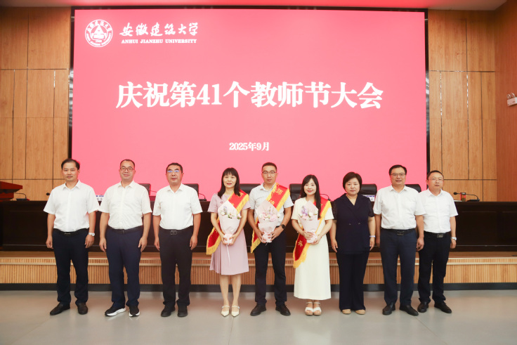 本网讯 9月10日,学校在紫云路校区徽风楼二楼报告厅召开第41个教师节庆祝大会。校领导,2025 年度校师德标兵、优秀教师、优秀教育工作者,近一年来省部级及以上人才计划入选者、科研业绩突出相关人员、新入职教职工等教师代表,全体处级干部参加会议。会议由校党委常委、副校长李早主持。