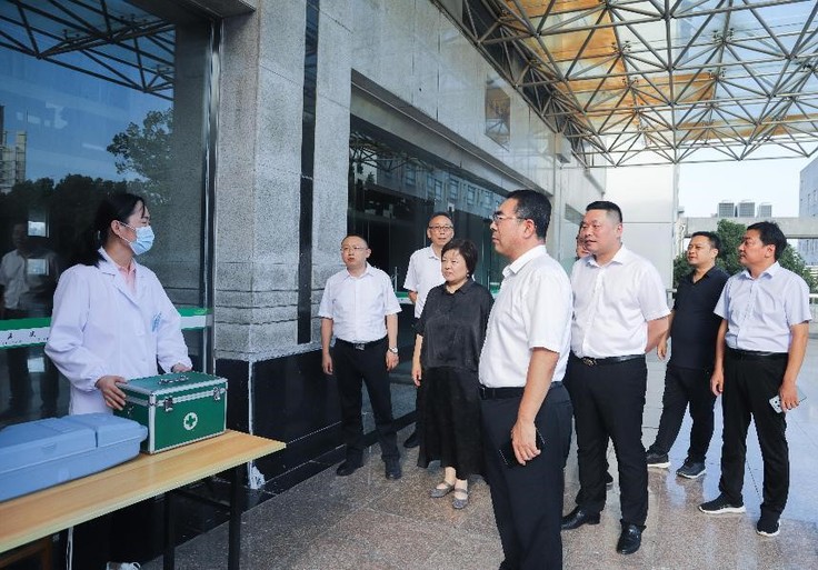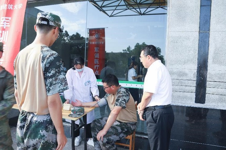 随后,校领导一行专门来到军训医疗保障点,详细了解医疗保障措施及新生身体状况,认真查看医疗物资储备和应急处理流程。蔡国军强调,要持续关注高温天气与极端气候的变化,科学调整训练时间和强度,严格落实健康巡查制度,完善应急预案,坚决守住安全底线,确保军训工作平稳有序进行。