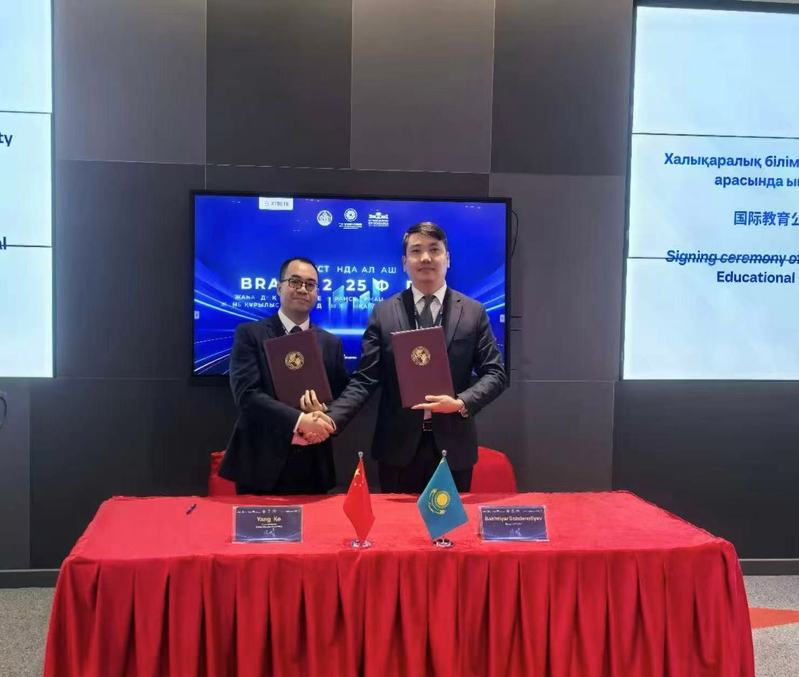 访问期间,杨科代表安徽建筑大学与哈萨克斯坦建筑与土木工程学院校长撒德纳利耶夫共同签署合作备忘录,双方将在科学研究、技术转化与高层次人才培养等领域建立长期稳定的战略合作关系,推动资源共享与优势互补。