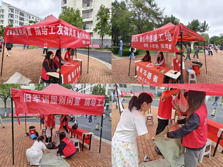 本网讯 近日,安徽建筑大学2025级新生在完成军训任务后,开展了一场别开生面的爱心传递活动。由校团委、人武部、国有资产管理处联合举办的军训服装义捐活动在校园内开展。