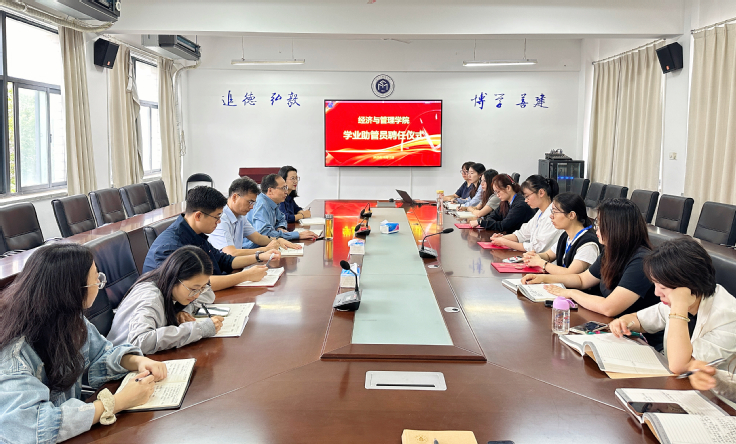 本网讯 为深入学习贯彻习近平总书记关于教育的重要论述,落实立德树人根本任务,进一步加强和改进学风建设,充分发挥榜样学生的示范引领作用。近日,经管学院在建树楼404会议室举办学业助管员聘任仪式。学院领导班子成员、全体辅导员、教学办教师及三名成功保研的“准研究生”参加仪式。仪式由学院党委副书记汪令宇主持。