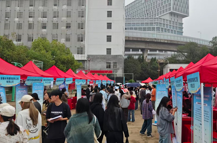 本网讯 近日,我校2026届毕业生(经济类、管理类专场)秋季就业市场在金寨路校区篮球场成功举办。尽管天公不作美,下着淅淅沥沥的小雨,但现场依旧人气爆棚、氛围火热,求职学子与参会企业的热情丝毫未减。