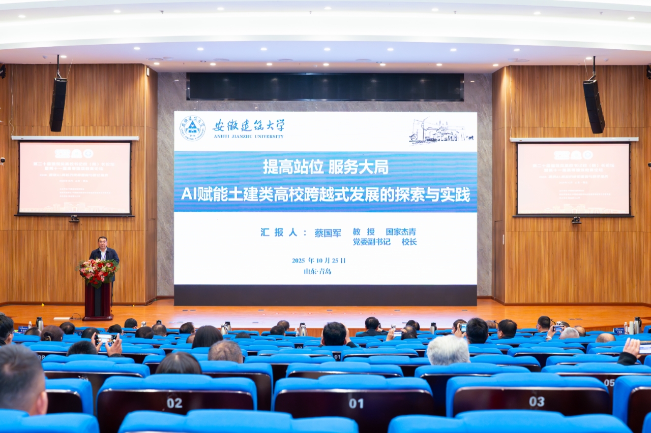 本次论坛为全国建筑类高校提供了宝贵的交流平台,安徽建筑大学通过积极参与和主题分享,进一步扩大了学校影响力,也为推动人工智能时代建筑类高等教育创新发展凝聚了共识、探索了路径。学校将以此次论坛为契机,持续深化教育教学改革,认真谋划学校“十五五”教育事业发展规划,为行业转型升级与高质量发展注入新动能。(文/图:杨雨生;一审:王琳 二审:马巍 三审:马宾)