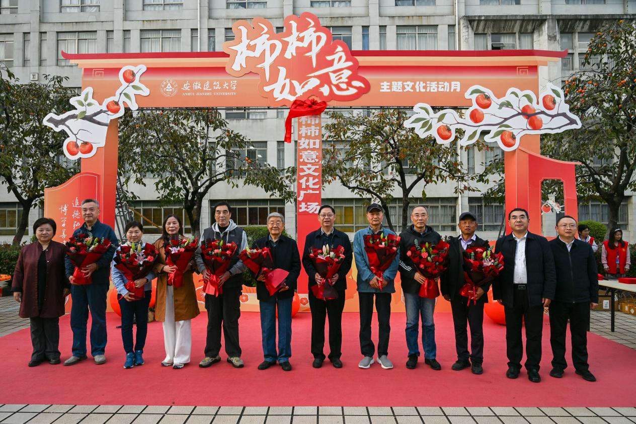本网讯 “柿柿称心情自畅,霜飞叶落绘深秋。”金秋十月,建大校园里的柿树枝头硕果盈枝。10月29日下午,学校首届“柿柿如意”文化活动月在紫云路校区顺利闭幕。校党委副书记、校长蔡国军,党委常委、副校长李早,党委常委、副校长高跃峰,离退休老同志代表,合肥荣事达电子电器集团有限公司副总裁罗松,安徽荣品科技住宅发展有限公司董事潘寅,黄山市上丰乡党委书记汪红英,上丰乡党委人大主席杨剑,上丰乡党委委员方芝以及师生代表齐聚柿子文化广场开展重阳敬老及总结表彰活动。