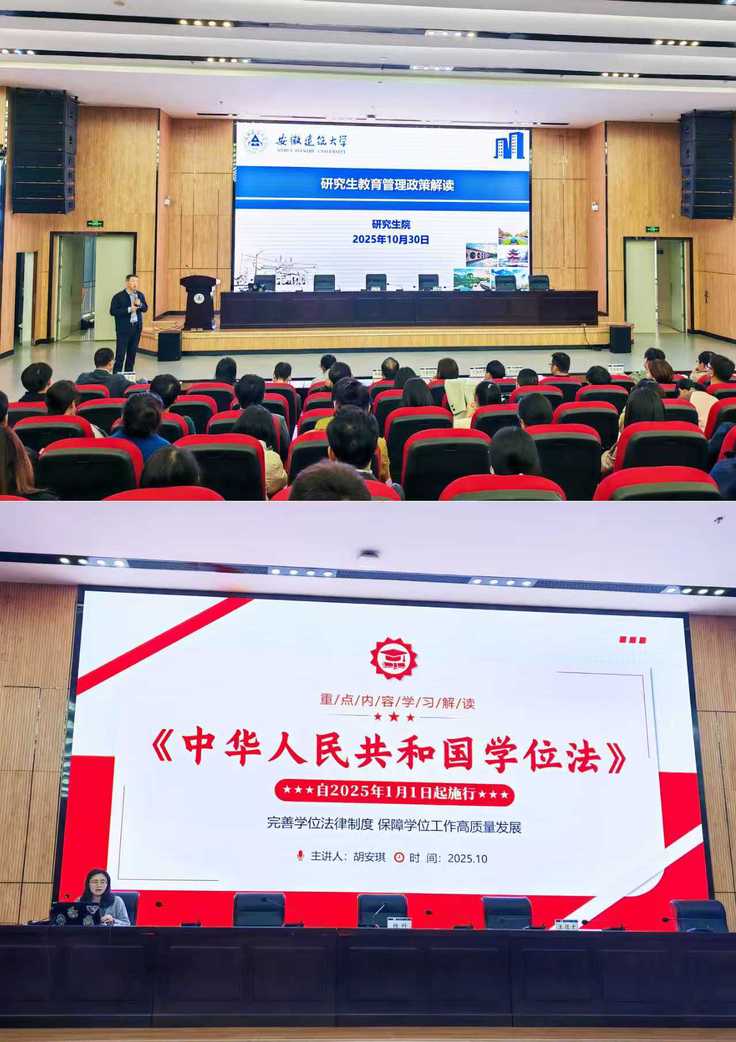 研究生院院长朱达荣教授就研究生教育管理相关政策进行详细解读,帮助导师准确把握培养流程与管理要求,为规范开展研究生指导工作提供制度保障。公共管理学院胡安琪老师开展《中华人民共和国学位法》专题辅导,系统讲解学位授予与培养管理的法律依据,进一步增强导师依法履职的意识和能力。