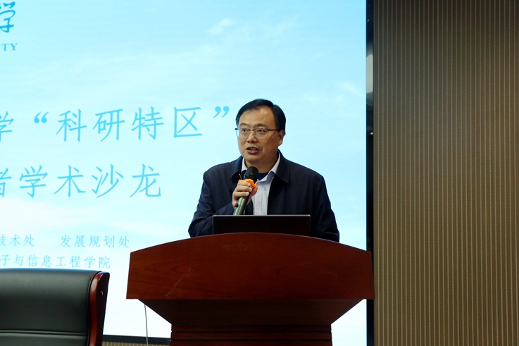 校党委常委、副校长王佐才出席活动并致辞。科技处、发规处、电子与信息工程学院领导班子成员、相关学院科研工作者、学校在站博士后及在校博士生、硕士生等100余人参加活动,活动由电子与信息工程学院院长杨亚龙主持。