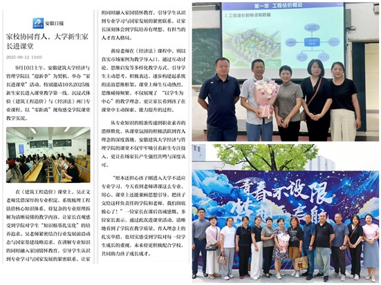 以新生入学为切入点,构建“教师主导教学、家长辅助督学、学生主动求学”的家校共育体系。举办“家长进课堂”特色活动,邀请2025级新生家长走进课堂,与学生同上“开学第一课”,参加新生见面会。通过观摩教师授课过程、了解学院育人政策、参与家校专题活动,让家长既了解教师教学规范,也明确学生学风要求。