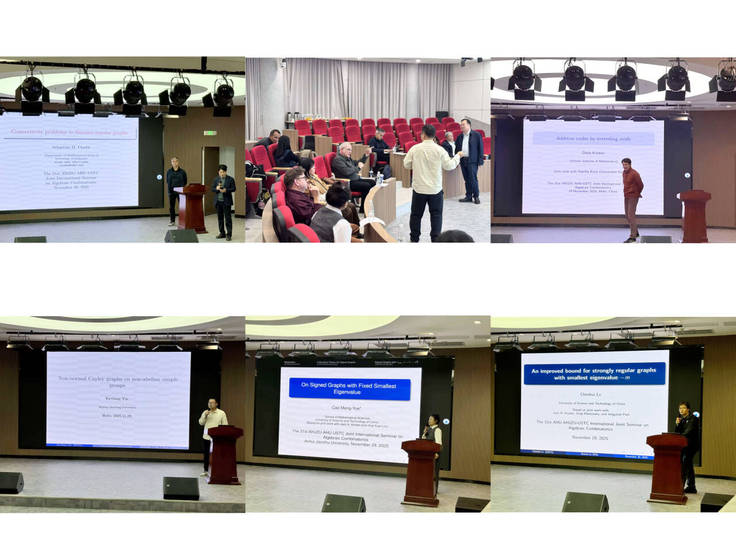 会上,来自美国特拉华大学Sebastian M. Cioabă教授、俄罗斯索伯列夫数学研究所Denis Krotov研究员、北京交通大学尹富纲副教授、中国科学技术大学曹梦月博士、中国科学技术大学吕晨晖博士生等分别就代数组合领域的最新成果在会议上进行了交流。