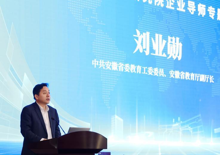 刘业勋在讲话中着重强调,企业导师是连接高校人才培养与产业实际需求的重要桥梁纽带,在推动产学研协同创新、加速科技成果转化、培育高素质应用型人才等方面肩负着重要使命。他希望全体企业导师充分发挥自身行业优势与实践经验,深度参与高校人才培养全过程,促进教育链、人才链与产业链、创新链有机衔接,为安徽高等教育高质量发展与产业转型升级注入强劲动力。