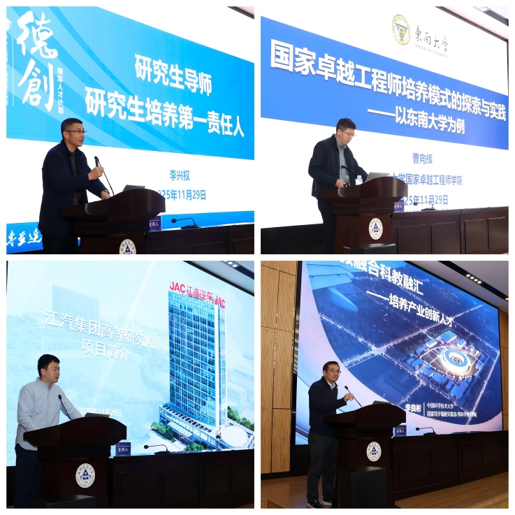 主旨报告环节,东南大学国家卓越工程师学院副院长曹向辉解析卓越工程师培养的核心要素与实现路径;中国科学技术大学先进技术研究院、卓越工程师学院副院长李兴权分享校地企联动培养高层次工程技术人才的创新模式;江汽集团技术中心底盘设计院副院长邵文彬以线控底盘技术合作为例,介绍校企联合攻关核心技术并应用于尊界S800车型的案例;中国科学技术大学核科学技术学院执行院长、党委书记李良彬从学术创新与人才培养融合角度,拓展校企科研攻关思路。