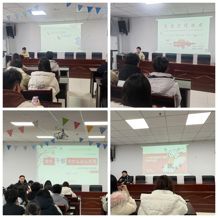本网讯 为进一步加强学生干部队伍建设,提升新生学生干部的综合素质与履职能力,明确工作职责与担当,充分发挥学生干部在学院发展与班级管理中的桥梁纽带作用,电信学院精心组织开展了2025级新生学生干部培训班。院党委副书记丁媛媛、院党委组织员尹雪莲、院团委书记吴明轩、辅导员刘毅阳分别授课,来自2025级各班的班长、团支书、学习委员等班级主要学生干部共计120余人参加培训。
