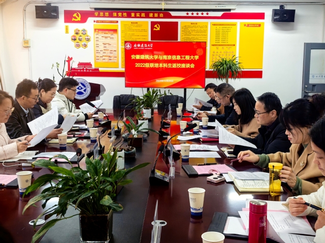 本网讯 近日,安徽建筑大学与南京信息工程大学首届联合培养的2022级83名本科生平安返回。南京信息工程大学金牛湖产教融合园区相关负责人,学校学生处、本科生院(创新创业学院)、后勤基建处、保卫处等相关职能部门、相关学院负责人、专业系主任和辅导员等参加了2022级联培本科生返校工作座谈会。