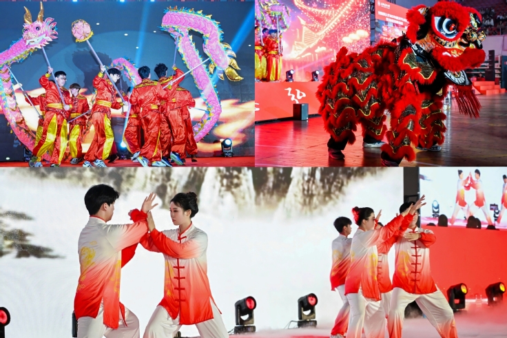 “体育强魄——健体砺志向未来”篇章里,《徽韵·太极》将徽州雅韵与传统武术相融,《龙狮呈祥》以铿锵锣鼓展现青春活力。校党委常委、副校长杨科为在全国运动会、省级体育联赛中斩获佳绩的运动员代表颁奖,彰显建大学子顽强拼搏、团结协作的体育精神。