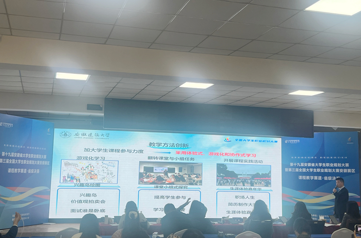 本网讯 近日,在第十九届安徽省大学生职业规划大赛暨第三届全国大学生职业规划大赛(安徽赛区)半决赛中,我校方浩、屈永帅两位同学凭借扎实的职业规划能力与出色的现场表现,成功晋级省级决赛;在课程教学赛道省级决赛中,环境与能源工程学院徐明露老师斩获省级银奖,彰显我校就业育人工作的丰硕成果。