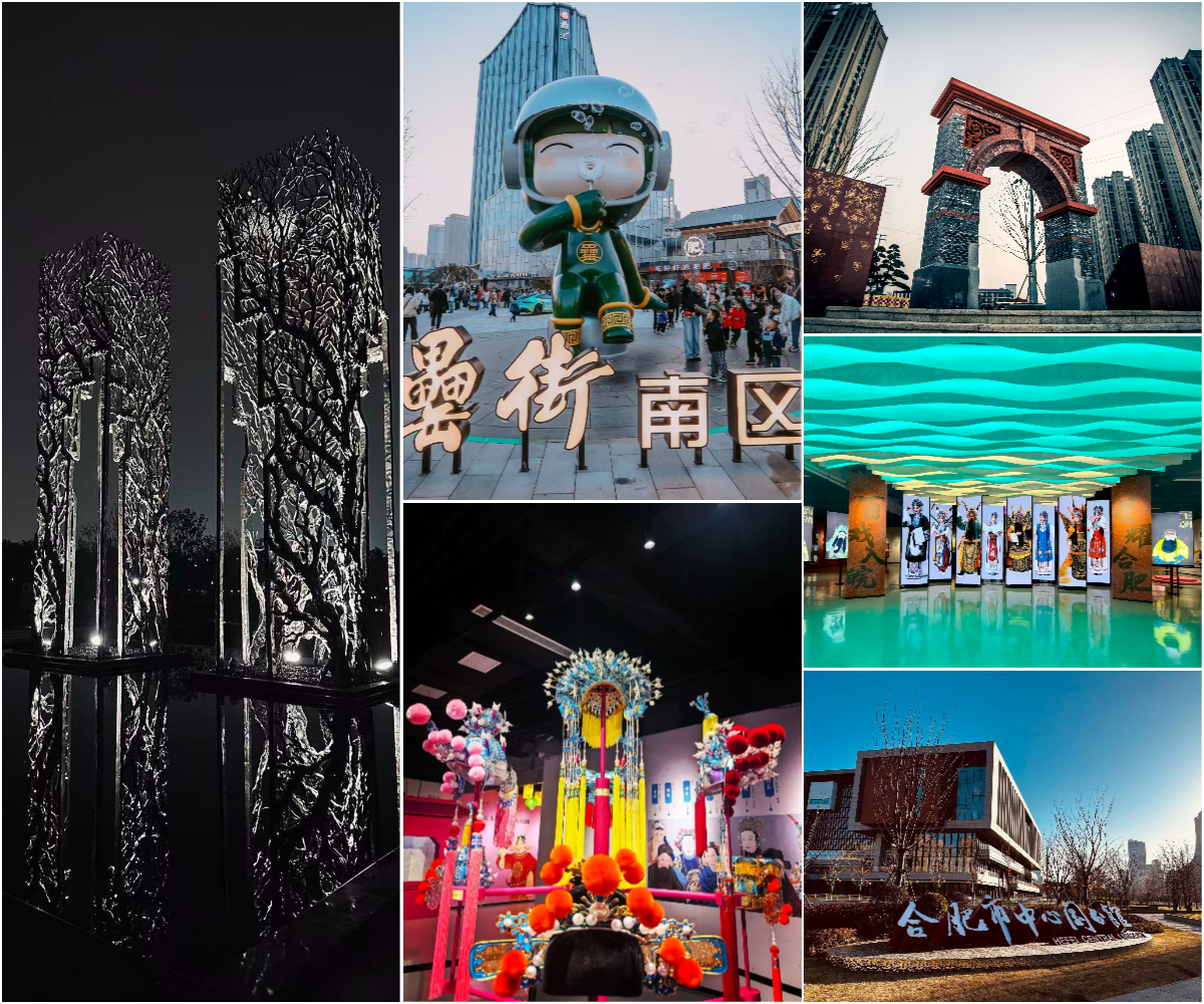 社会服务成果再攀高峰,学术交流拓展行业影响,安徽省设计创意的资源不断向学院汇聚。依托科研平台优势,学院深度参与安徽城乡建设。2023年完成安徽建筑大学校史馆设计,并在合肥市树立了2022年的延乔路红色街区、2023年的骆岗公园“喜上人家”主题雕塑、2024年的罍街“罍宝”科技艺术装置、2025年的合肥市中心图书馆等一批产生巨大影响力的城市文化地标,实现了学术、文化与产业价值的三重突破。成功承办安徽国际美术双年展雕塑展,主办第十六届全国高校建筑与环境设计专业艺术研讨会、“手艺・守艺”2025中国工艺美术科普教育周、“AI实战派”系列讲座等活动,搭建起高端学术交流平台,强化行业话语权与引领力。