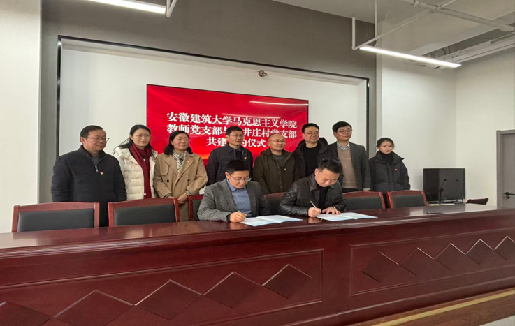 参观结束后,机关党委团委党支部书记丁超与小井庄党支部书记郭超共同为“安徽建筑大学大学生社会实践基地”揭牌。马克思主义学院习近平新时代中国特色社会主义思想教研室教师党支部与小井庄党支部签订了共建协议。(文/图:周叶君 夏文雨;一审:任亚若;二审:刘晓君;三审:李万银)