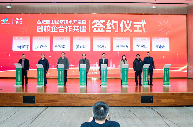 招生就业处负责人在发言中表示,合肥蜀山经济技术开发区作为国家级经济技术开发区,产业基础雄厚、企业集聚效应显著,人才需求持续旺盛,已成为众多高校毕业生就业创业的优选之地。学校高度重视此次校企合作,希望以签约为契机,进一步深化产教融合,共建协同育人体系,推动资源互通共享,打造一批具有示范效应的实习就业基地,围绕区域产业发展需求拓展合作领域,携手共筑政校企合作新高地。