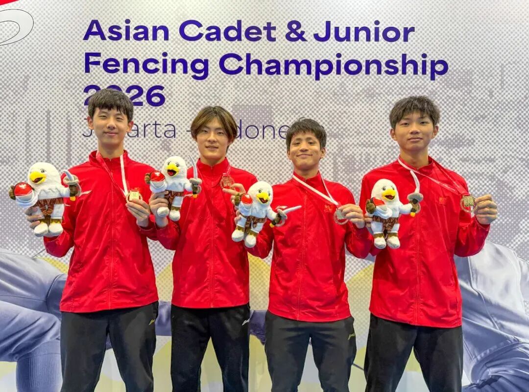 本网讯 2月20日至27日,2026年亚洲青少年击剑锦标赛在印度尼西亚雅加达开赛,这项由亚洲击剑联合会主办的亚洲顶级青少年击剑赛事,汇聚了来自亚洲 30 个国家和地区的顶尖青少年剑客,是检验亚洲青少年击剑后备力量的重要舞台。安徽建筑大学高水平运动员郭一凡代表中国队出战青年组男子花剑项目,在青年男子花剑团体决赛中力克劲敌,成功斩获金牌,为中国代表团再添荣耀,也为我校争光添彩。
