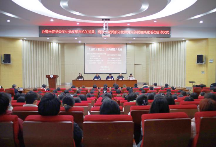 为深入贯彻新时代党的建设总要求,全面落实学校《关于进一步深化改革,加强效能建设的实施意见》及“高效办成一件事”工作部署,推动基层党组织资源整合、优势互补、互助共进,构建师生联动、多方协同的育人新格局,3月11日下午,公管学院党委学生党支部与机关党委、离退休党委部分教师党支部在金寨路校区图书馆二楼报告厅举行党建共建活动启动仪式,机关党委、离退休党委部分教师党支部代表、学院学生党支部书记和200余名学生党员及骨干参加仪式,学院党委书记汤娜主持会议。