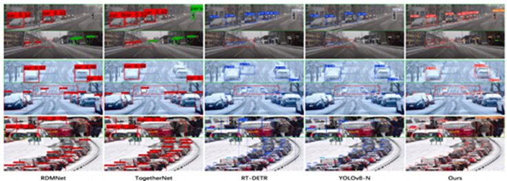 恶劣的天气条件严重影响自动驾驶系统的视觉感知能力,主要表现为图像质量下降、目标遮挡加剧以及光照环境不稳定。尽管当前主流基于深度学习的检测方法在标准场景中表现优异,但在恶劣天气下其鲁棒性显著受限,原因在于受损特征表示与算法适应性不足共同削弱了模型在动态气象条件下的泛化能力。