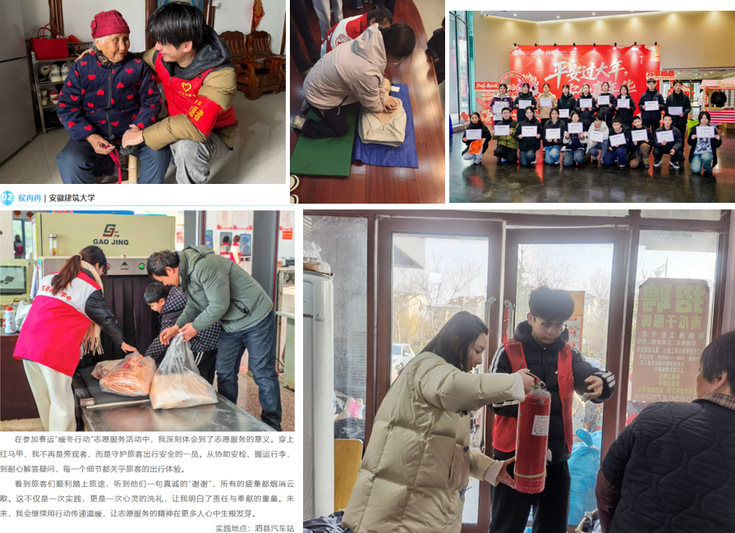 除丰富的校园活动外,学院积极引导学子将雷锋精神延伸至校外,寒假期间组织开展“学雷锋・返家乡”社会实践志愿服务活动。全院学子踊跃参与,奔赴各地社区、乡村、敬老院、中小学等场所,开展形式多样的志愿活动:有的化身环保宣传员,走进社区开展低碳环保、垃圾分类科普宣讲;有的走进乡村小学,开展课业辅导、趣味课堂,为乡村孩子送去知识与温暖;有的前往敬老院,陪伴孤寡老人,为老人打扫房间、唠家常,传递亲情与关怀;还有的参与社区卫生清扫、交通劝导等志愿服务,用实际行动为家乡建设添砖加瓦。学子们将校园所学与社会实践相结合,把雷锋精神融入家乡建设的生动实践,在志愿服务中锤炼品格、增长才干,让雷锋精神在乡野大地绽放光彩,展现了环能学子的责任与担当。