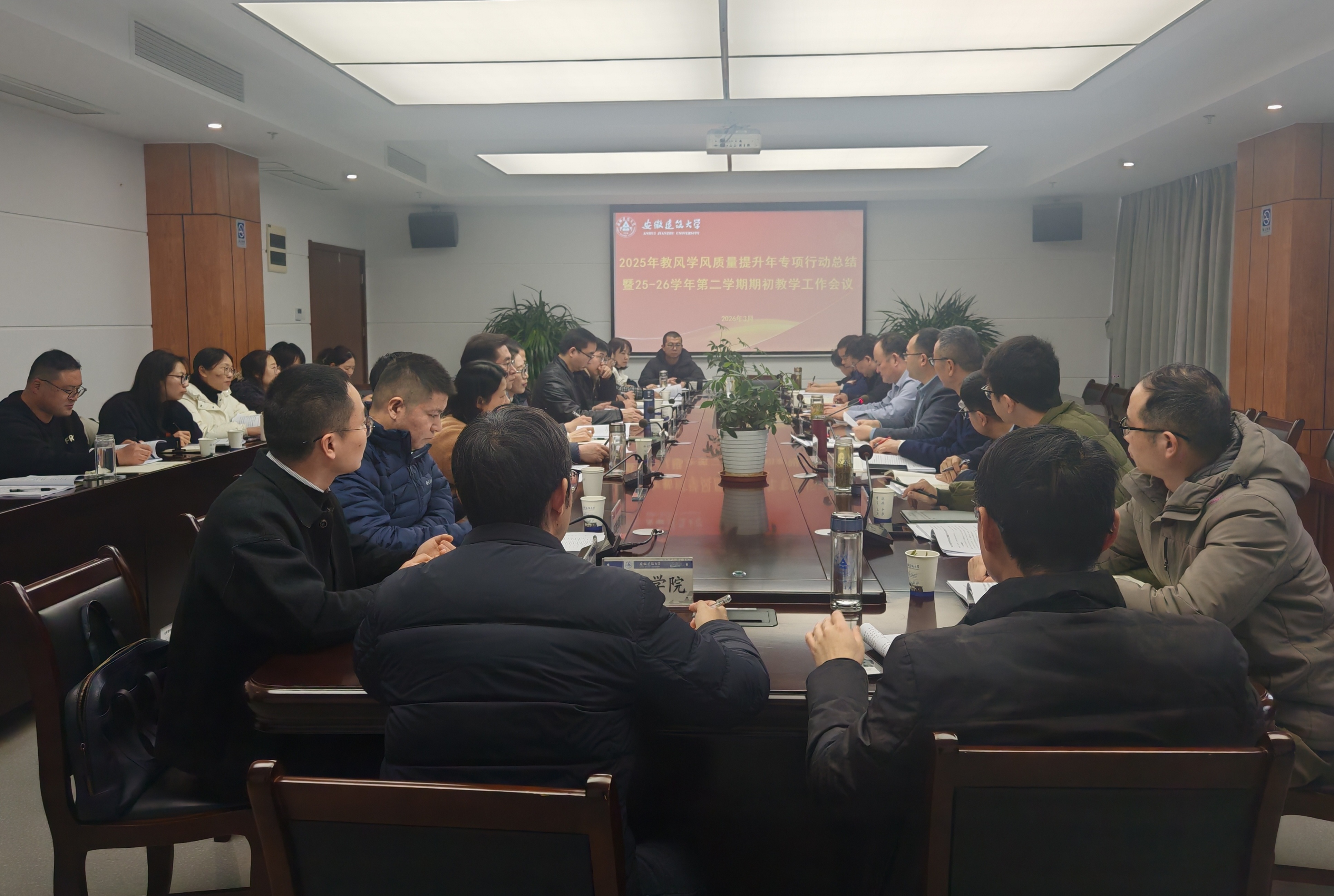 本网讯 3月17日下午,学校在紫云路校区徽风楼21楼第三会议室召开2025年教风学风质量提升年专项行动总结暨25-26学年第二学期期初教学工作会议。校党委常委、副校长杨科出席会议,本科生院院长马巍主持会议。宣传部、学工部、人事处、团委等部门负责人,各教学单位分管教学工作负责人,校教学督导组组长及本科生院相关负责人等参加会议。