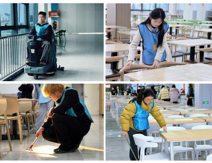 躬身实践,以劳筑美。学院团委联合后勤基建处,携手走进新南园餐厅,共同开展环境卫生清洁行动。志愿者们与工作人员并肩合作,有的仔细清洁餐桌,有的耐心整理厨具,共同维护师生的用餐空间,用实际行动传递劳动之美与校园温情。参与活动的同学表示,劳动虽然辛苦,但看到整洁明亮的食堂环境,心里特别满足。作为新时代青年,我们更应在日常小事中践行奉献精神,用勤劳的双手美化校园、服务同学。