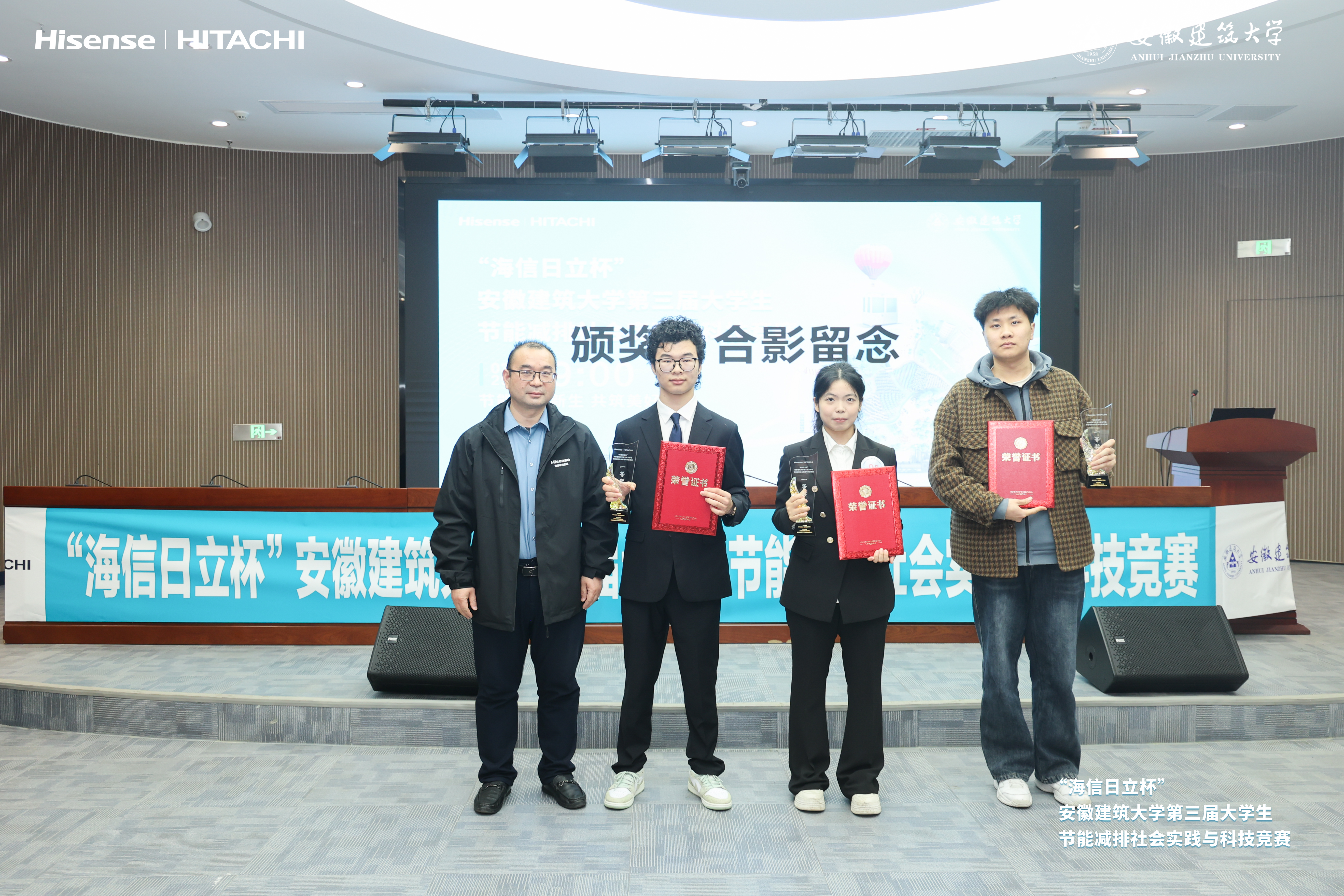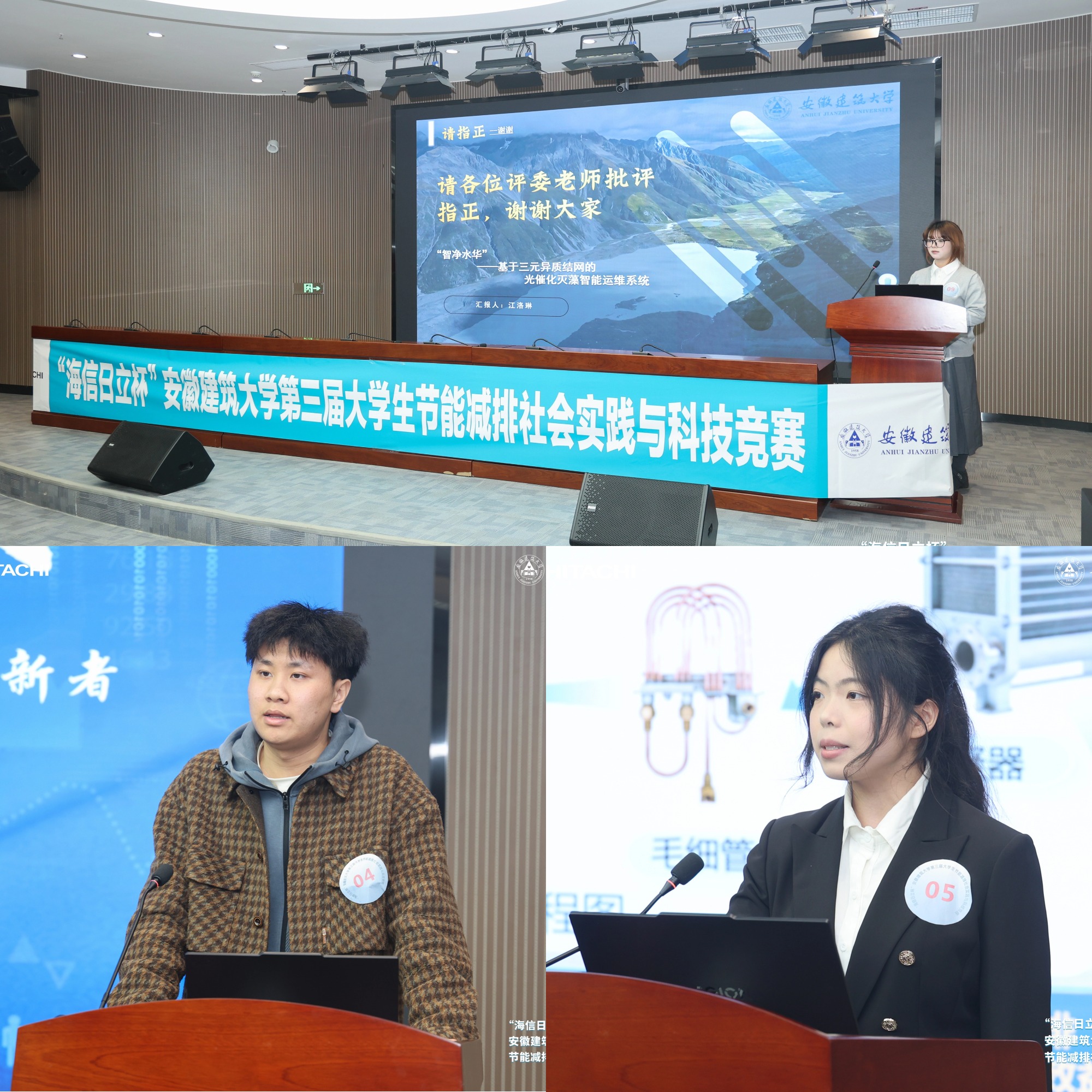本网讯 绿韵筑园凝智慧,低碳逐梦聚芳华。为深入贯彻国家“双碳”战略目标,厚植绿色低碳发展理念,激发大学生创新创造活力,3月25日上午,由安徽建筑大学本科生院(创新创业学院)主办,环境与能源工程学院、青岛海信日立空调营销股份有限公司合肥分公司联合承办的“海信日立杯”安徽建筑大学第三届大学生节能减排社会实践与科技竞赛,在安徽建筑大学紫云路校区徽智楼报告厅圆满落幕。经层层初选,学校17组优秀作品脱颖而出。