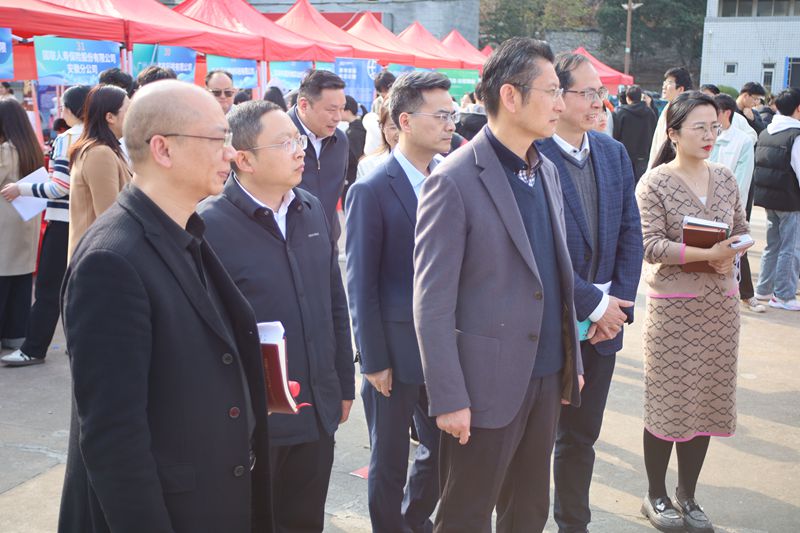 校党委书记马文革,党委常委、副校长高跃峰亲临现场指导工作,与用人单位代表和求职学生亲切交谈,详细了解企业招聘需求和学生就业意向,为毕业生求职加油鼓劲。