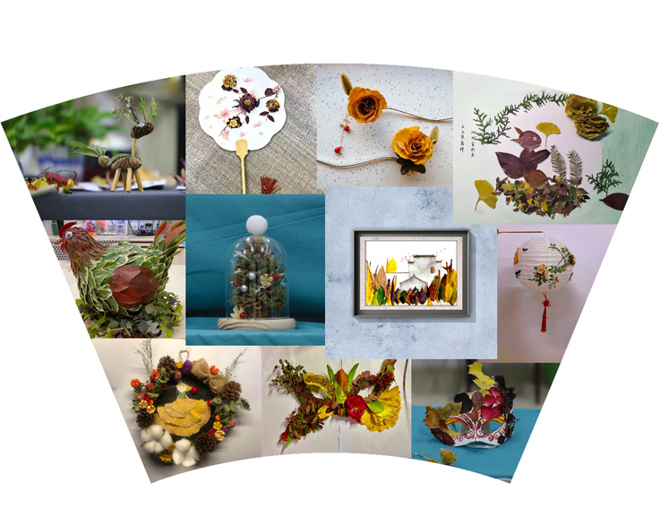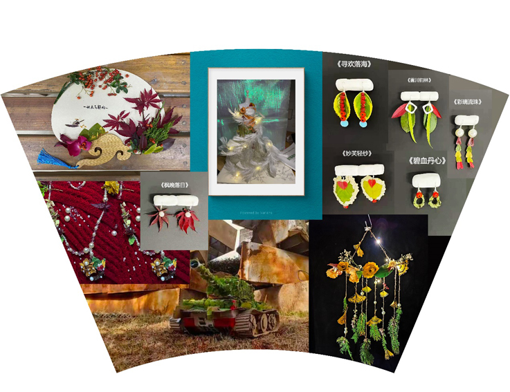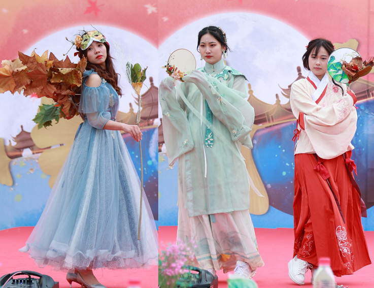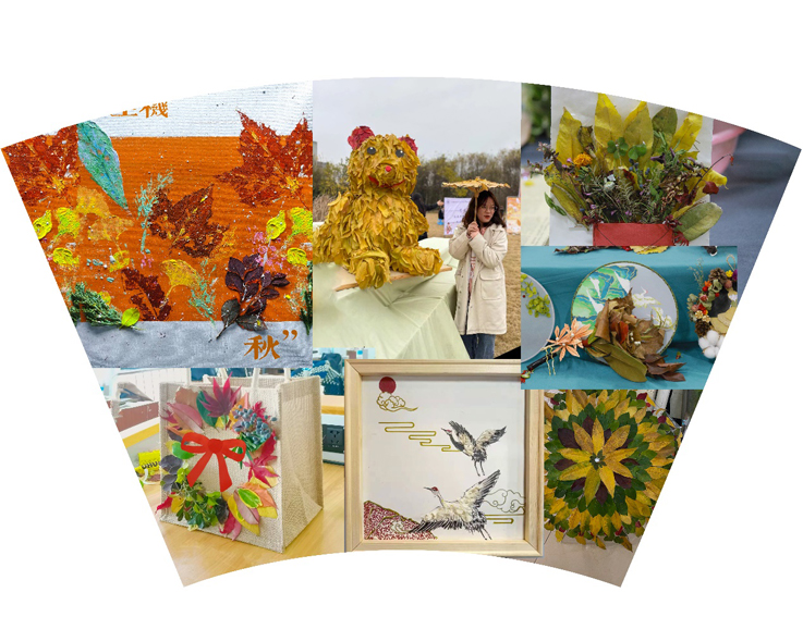 深秋的草坪像一块巨大的绒毯,同学们在草坪上搭建起了舞台,展示了以落叶为材料创作的时尚饰品、创意服装与艺术作品,不仅让台下的评委老师和观众称赞连连,更是吸引了路过的老师和同学,打造了一场视觉盛宴。